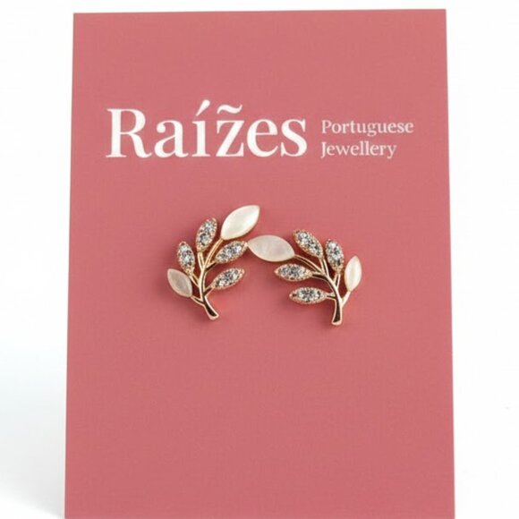 Elegant gold leaf earrings by , perfect for adding a touch of sophistication to any outfit. The intricate design and shimmering gold color make these earrings a standout piece. Made in Portugal 🇵🇹