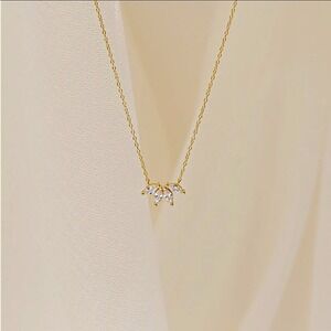 Gold leaf petal flower luxury zircon necklace measures 18”.