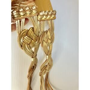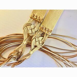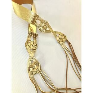 Gold Leather Fringe Tassel Tie Belt RLL Ralph Lauren Sz M Boho Metallic Sash