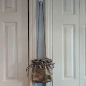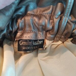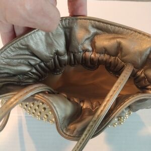 made in the USA genuine leather cute as heck EUC gold leather w gold studs *very slight wear on corner see pic /Access s29