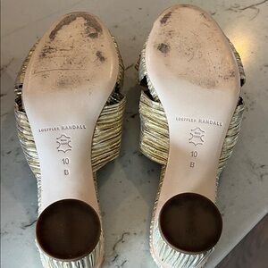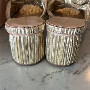 Step into elegance with these stunning gold slide sandals. Perfect for any occasion. Worn once. 2 inch round block heel. Comes with original box.