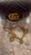 Chic black quilted mini bag. Features iconic gold GC logo. Stylish and versatile.