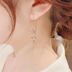 Gold Long Chain Threader Earrings for Women - Fashion Statement Drop Dangle Thre