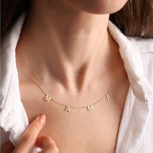Elegant gold necklace featuring 'MAMA' lettering. Perfect for adding a personal touch to any outfit.