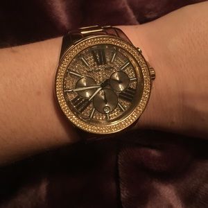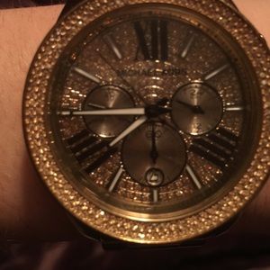 GUC. Light scratches on the band from normal wear. It's all gold in color. No rhinestones missing. 100% authentic. Willing to trade only for the MK 5879