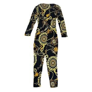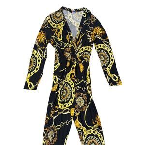 Gold Medallion Chain Baroque Print Jumpsuit Playsuit Stretchy Lightweight Sz L