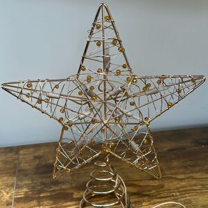 Gold Metal 12” Lighted Christmas Star Holiday Tree Topper/Stand Alone Home Decor