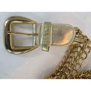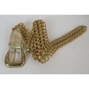 Gold Metal Braided Chain Belt Vintage Leather Connector Womens Size M/L