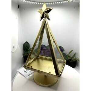 Gold Metal Christmas Tree Display Stand/Candle Holder With Star & Glass Panels