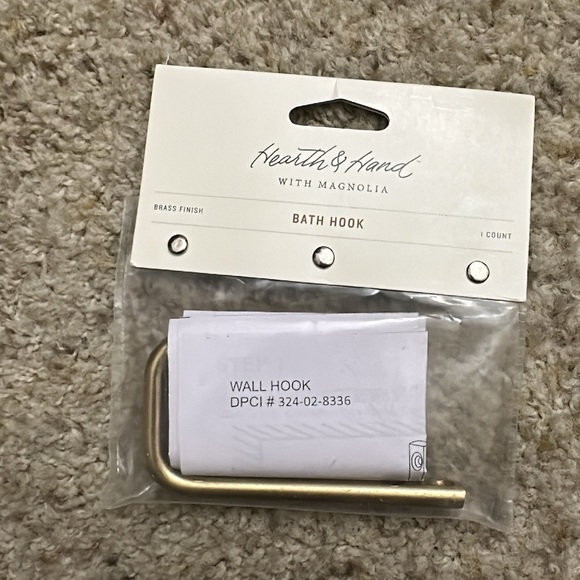 Sleek gold metal hook. Perfect for organizing spaces.