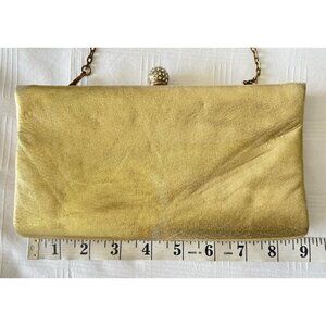 Gold Metal Mesh Evening Clutch Purse Rhinestone Crystal Teardrop Accents Vintage