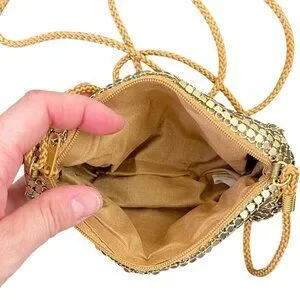 Gold Metallic Mesh Small Crossbody Evening Bag Party Purse
