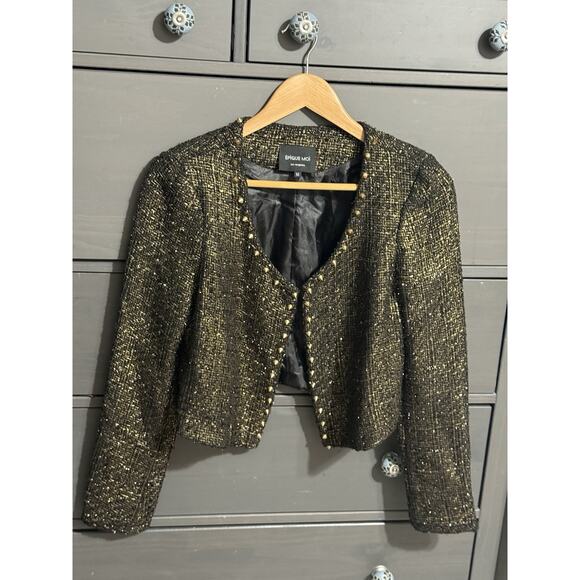 Gold Metallic Studded Tweed Jacket ÉPIQUE MOI gold cropped Size M EUC. Condition is Pre-owned - Excellent. Shipped with USPS Ground Advantage.