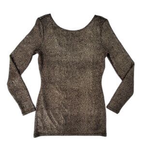 Gold Metallic Texture Black Long Sleeve Top Catherine Malandrino Sz S Shimmer