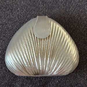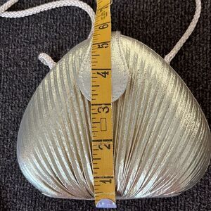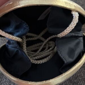 Gold Metallic Shell Clutch Mini Purse Snap Closure Crossbody Strap Black Inside