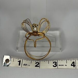 This exquisite gold brooch showcases a minimalist design with clean geometric lines, crafted from delicate metal wire. Its warm yellow gold hue adds a touch of elegance, making it a versatile accessory for any occasion.