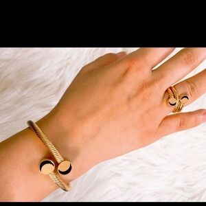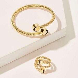 Gold‎ Minimalist Cuff Bangle & Wrap Ring