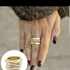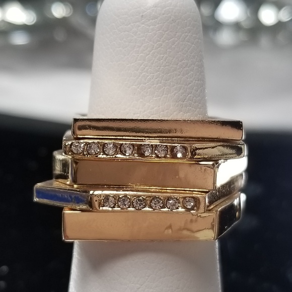 Gold Modern Stackable Rings. 18K Gold dipped with clear crystal stones. Total of 5 rings. Size 7.
