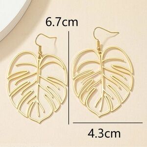 Super cute Gold Monstera Earrings! Made from Iron Alloy, these are 100% fashion earrings.