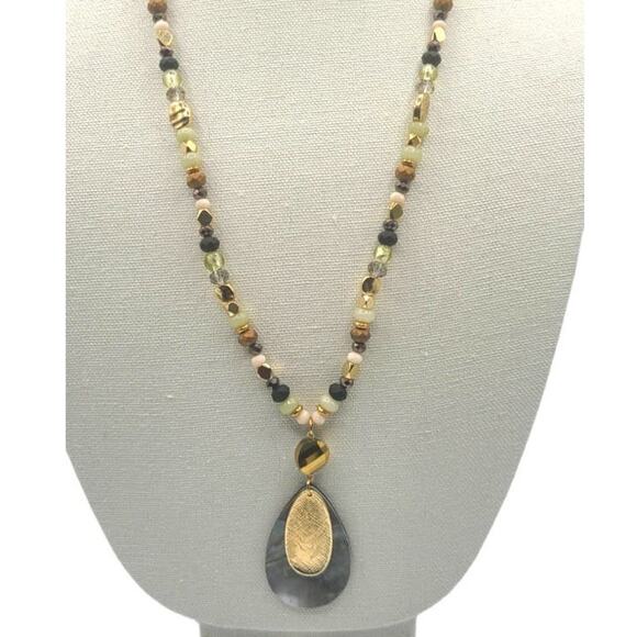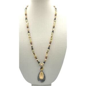 Gold Multicolor Beaded Pendant Fashion Necklace ~ NEW