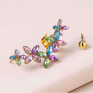 Gold multicolor ear climber earring flower accent detail.