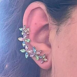 Gold Multicolor Flower Ear Cuff Climber Earring