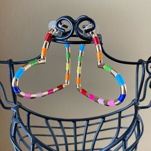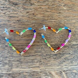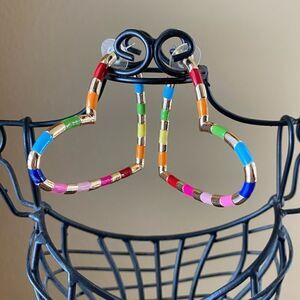 Gold & Multicolored Heart Hoop Pierced Earrings. Excellent Condition!