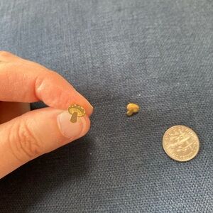 Charming gold mushroom stud earrings. Perfect for adding a whimsical touch to any outfit.