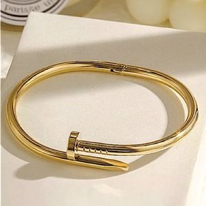 Gold nail screw head bangle bracelet fits up to 7.5”
