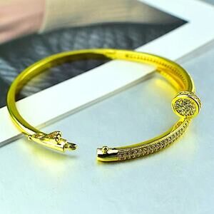 Gold Nail Zircon Screw Tack Bangle Bracelet