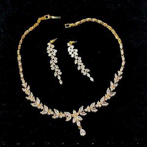 Gold Necklace Earrings Set 18k Cubic Zirconia Gold Bridal Prom Jewelry Set