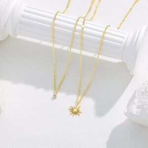 Gold Necklaces for Women, 14K Plated Dainty Layered Diamond Sun Pendant Choker S