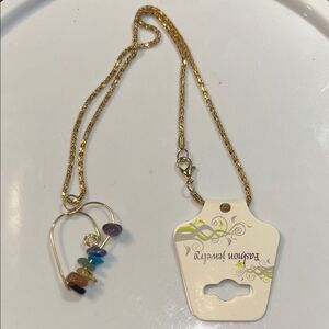 Elegant gold necklace featuring a multicolor stone pendant. Perfect for adding a pop of color to any outfit.
