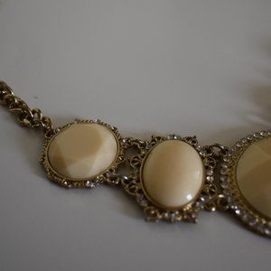 Gold & off-white statement necklace with small gemstone details. Necklace is in excellent condition and is barely worn.