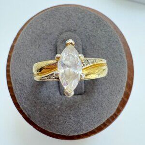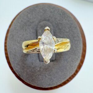 Gold Over Sterling Silver 925 Marquise CZ Solitaire Engagement Promise Ring SZ 7