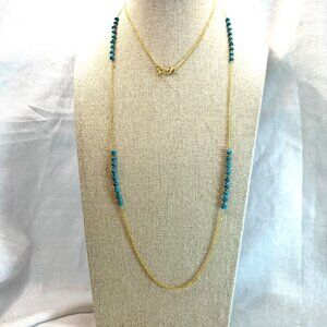 Gold over Sterling Silver (stamped 925 AV) long necklace with for sections of 9 faceted turquoise beads separated by gold tone beads