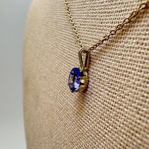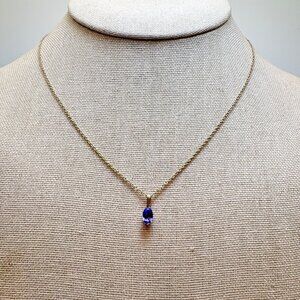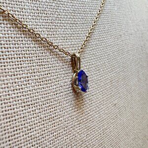 Gold Over Sterling Silver 925 Oval Synthetic Sapphire Pendant Necklace Size 18"