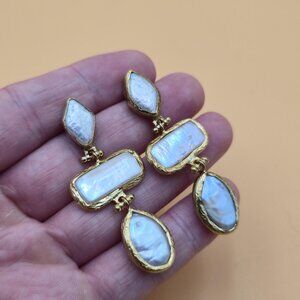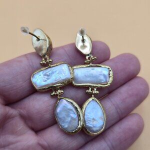 Gold Over Sterling Silver Genuine Pearls Handmade Vintage Earrings A5957