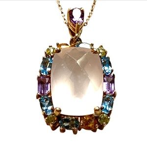 Pendant of Genuine Light Pink Quartz With a Multi Colored Stone Border