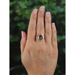 Gold Over Sterling Silver Natural Labradorite and Polki Diamond Ring Size 9 1/2