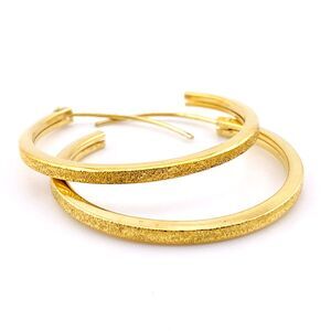 Gold Over Sterling Silver Thin Textured Hoop Earrings - 36MM Round - 925 Vermeil -