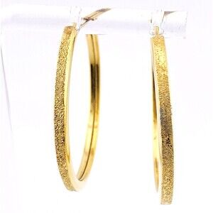 Gold Over Sterling Silver Thin Textured Hoop Earrings 36MM 925 Vermeil