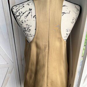 Mod style gold dress perfect for weddings or special occasions. Dress has a halter top that is perfect for showing off your shoulders and is long enough to be appropriate for parties with parents and in laws.
