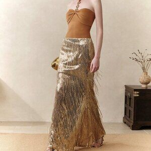 Gold Party Women's Sequin Fringe Mermaid maxi skirt