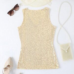 Gold Party Women's Sequin V-Neck Sleeveless Tank Top