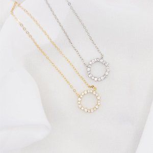 Gold Pave Circle Necklace, Silver Pave Circle Necklace