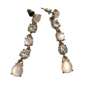 🌴 Gold & Pearl Crystal Drop Earrings | Elegant 2” Dangling Dangle
