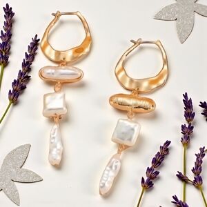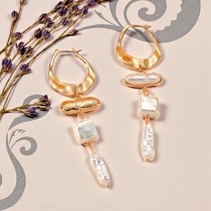 Bring instant glamour to your look with these breathtaking long faux pearl statement earrings! 🌸 Handcrafted with luxe gold-plated copper and featuring a stainless steel ear needle for comfort and durability, each piece showcases a hammered teardrop hoop paired with three dazzling faux baroque-style pearls in unique organic shapes. The elongated drop creates a graceful, face-framing silhouette, making them a standout choice for any occasion. Lightweight yet bold, they’re perfect for transforming a casual outfit into a chic ensemble or adding the finishing touch to your evening attire. Whether for a wedding, date night, or brunch with friends, these earrings deliver the perfect mix of boho charm and timeless elegance. Pair them with a flowy dress for a romantic vibe or a sleek blazer for modern sophistication.