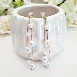 Gold Pearl Long Tassel Drop Dangle Earrings Wedding, Bridal, Statement 💖2/$30