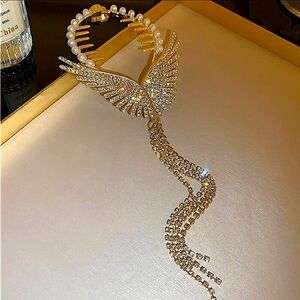 Gold Pearl Rhinestone Angel Wing Hair Clip Claw Hair Accessory